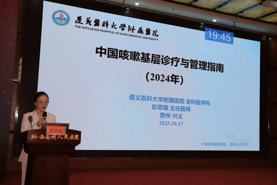 会议邀请到遵义医科大学肖雪教授、贵州省第三人民医院周厚荣教授、贵州医科大学附属医院穆琼教授、黔东南州人民医院潘莉教授、六盘水市人民医院莫国毅教授、遵义市第一人民医院蒲盛蓝教授、贵州省人民医院李岚教授、贵阳市第一人民医院史兰教授、遵义医科大学附属医院彭章丽教授、范腾阳教授、蔡洪涌教授及朱晓英教授等十余位省内外知名专家,围绕《中国咳嗽基层诊疗与管理指南》《2024年中国血脂管理指南》等主题,结合“三高共管”“数字化慢病管理”等热点,分享前沿理念与实践经验,现场学术氛围浓厚。