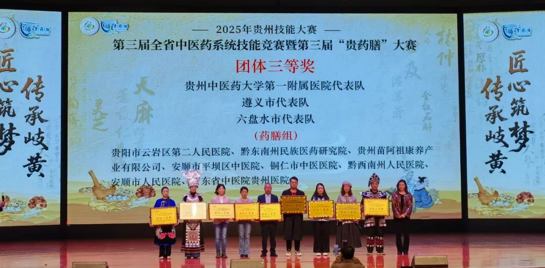 金秋十月,黔膳飘香。10月22日,第三届贵州省中医药系统技能竞赛(药膳组)暨第三届“贵药膳”大赛总决赛在贵阳花溪盛大开幕。本次大赛由贵州省中医药管理局联合省卫生健康委员会等9部门共同主办,旨在以赛促学、以赛促练、以赛促用,推动中医药事业高质量发展。我院派出专业团队参赛,表现优异,斩获“团体三等奖”及“优秀作品奖”两项荣誉。